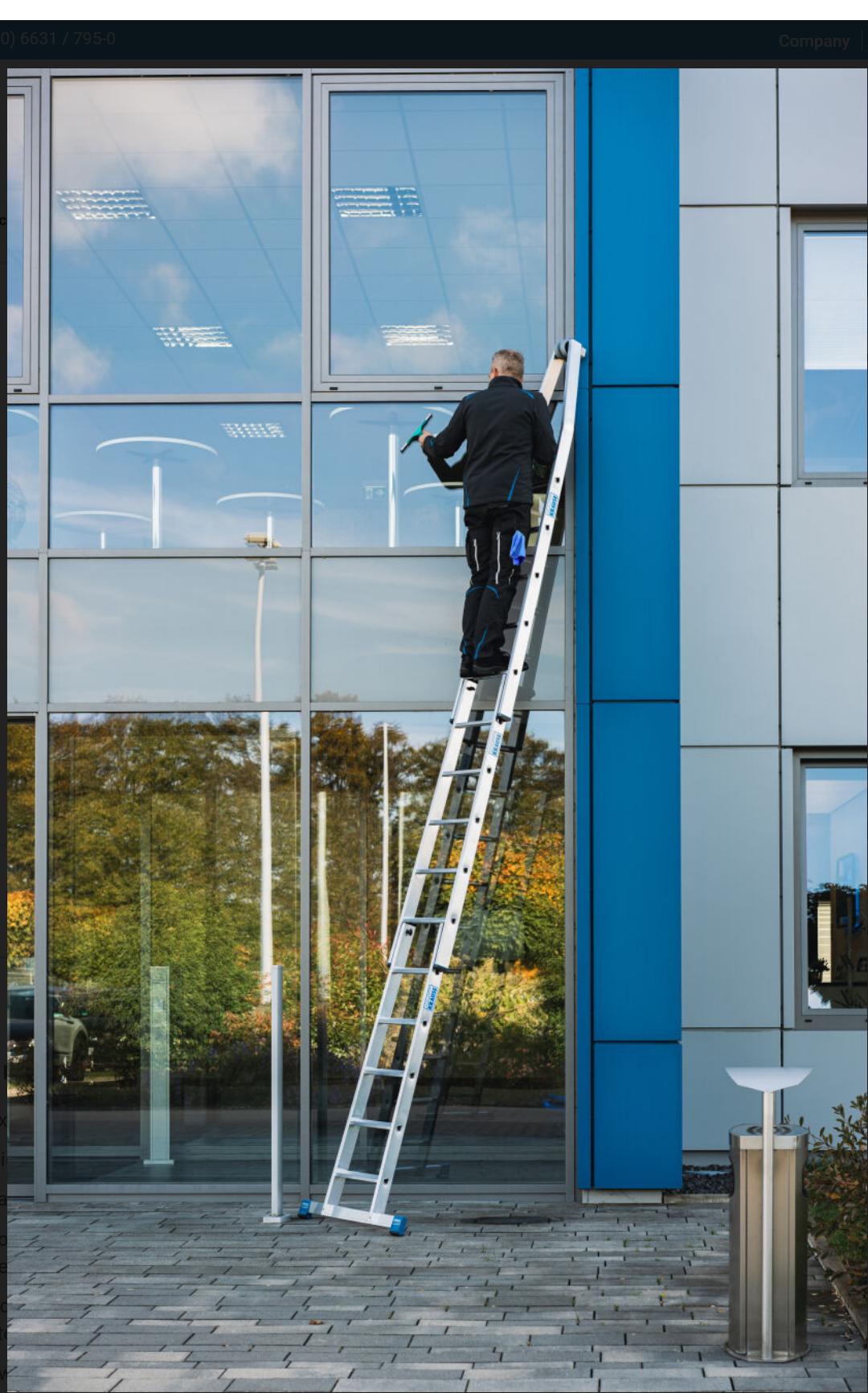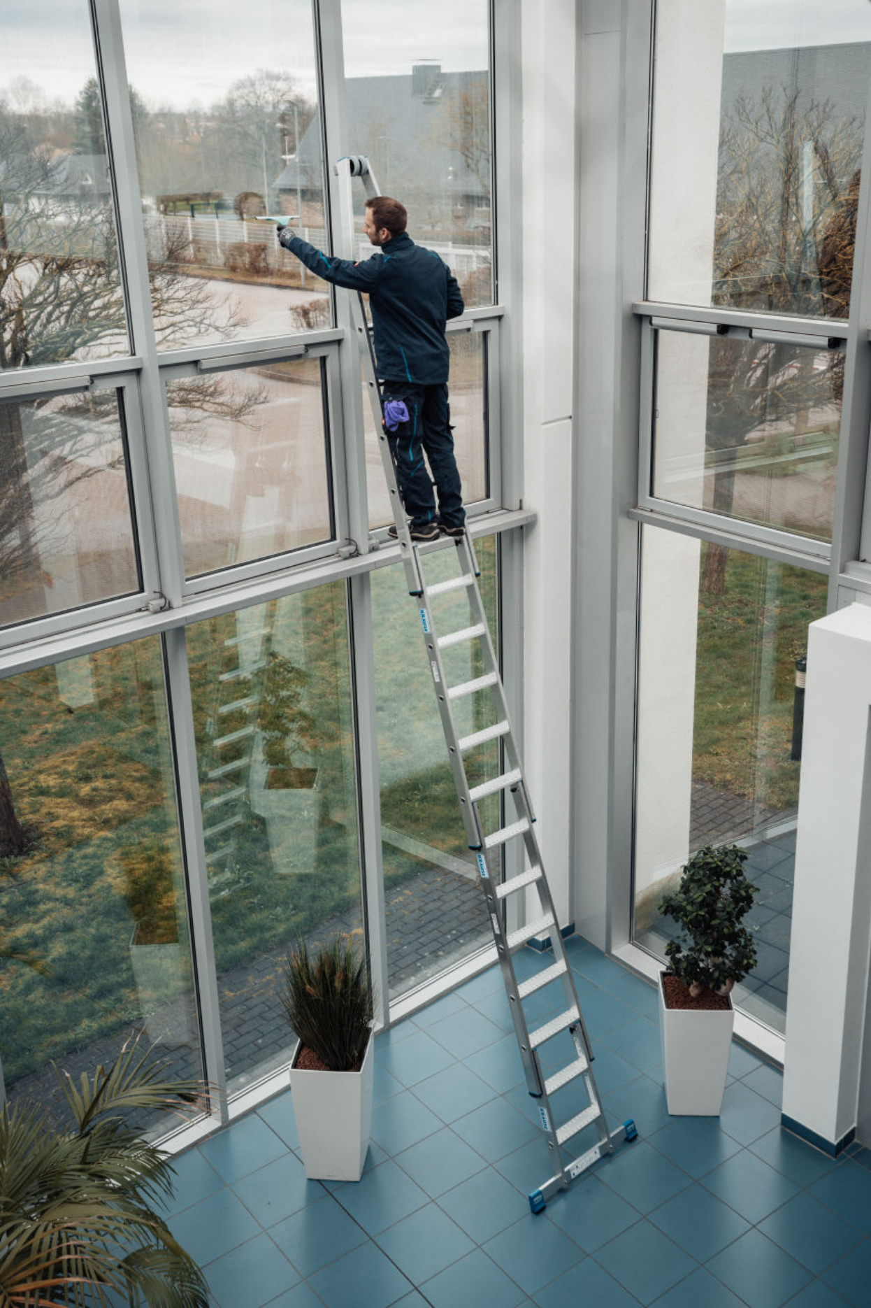 - Échelle de laveur de vitres stable à marches antidérapantes R13 (80 mm), adaptée à un usage intensif,